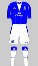 Some have been works of art - think of the beautiful, stylish simplicity of the 1969-70 championship winning outfit. Others have been appalling; none more so than the 1985-86 'Gary Lineker' kit, which some people believe was the real reason why we blew the double in that season! Dave Moor, the founder of Historical Football Kits, has put together one of the most fascinating websites you could ever wish to see. It documents the development of kits worn by teams who have played first-class football in England and Scotland, and has images showing just about every kit ever worn by all the clubs who have appeared in those Leagues. It also has fascinating articles, not just on things like the best and worst kits of all time, but also about the history of the clubs themselves. The images below are all taken directly from the site, are all the copyright of Dave Moor and are all reproduced here with his kind permission. They provide a fascinating breakdown of the way in which our kit has developed over the decades. The site is constantly changing as newly researched material comes to light and as and when Dave upgrades the images - so do go and look at the site itself in case the images have been amended or updated. AND NOW! - CLICK HERE - FOR EVERTON'S CHANGE KITS!!!